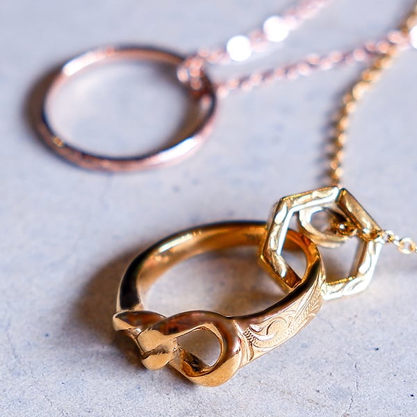 ホルダーにもなるカジュアルなリングネックレス。 程よいサイズ感が男女共に使い易くペアネックレスとしておすすめです♡