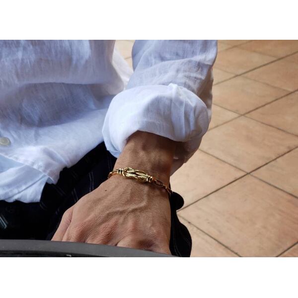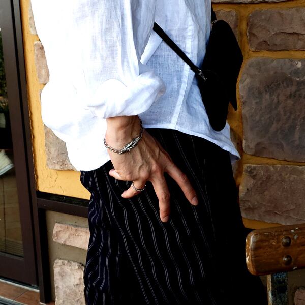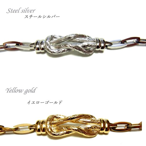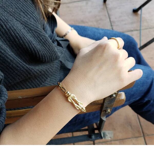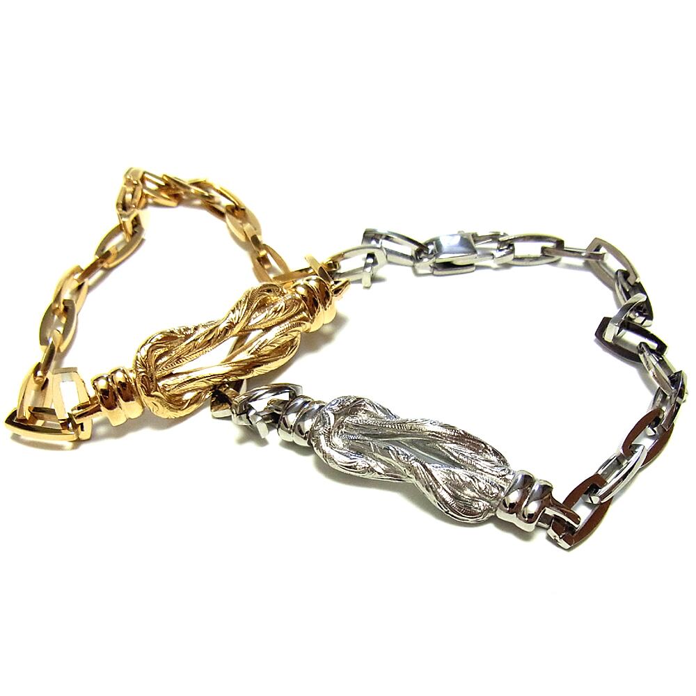 サイズ 横幅:約3.2cm 縦:約1.0cm 厚み:約5.0mm 腕周りサイズ スチールシルバー:14cm - 21cm イエローゴールド:14cm - 18.5cm (好きな個所で留められます)