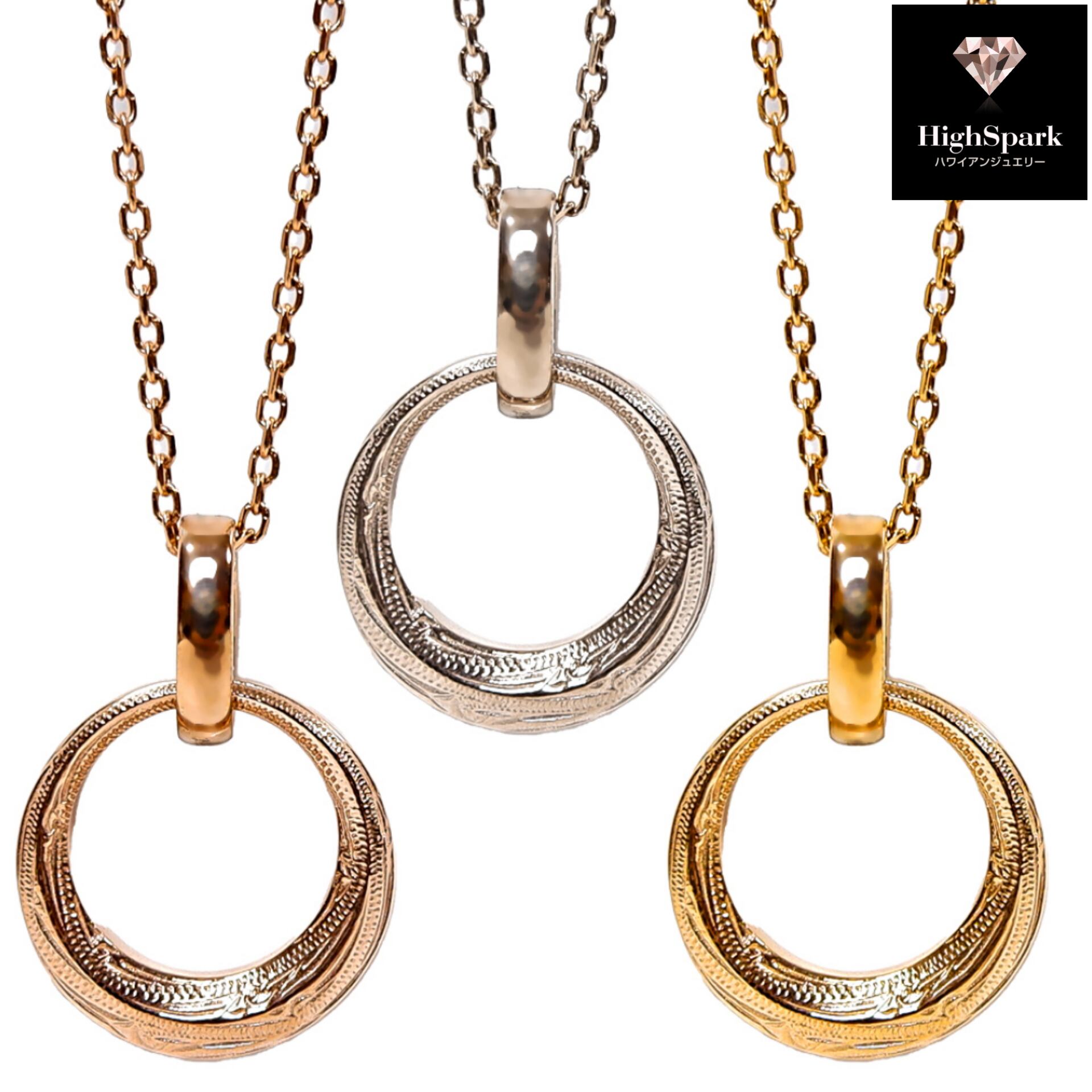 繊細な彫りが施される幸せ運ぶスクロール(波模様)とプルメリア花とカレイキニのトロピカルなデザインでハワイを満喫。
